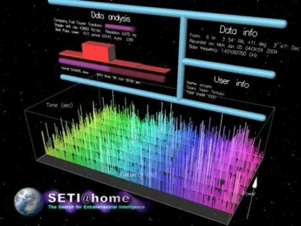 Analizar señales de radio procedentes del espacio para detectar posibles indicios de inteligencia extraterrestre, aprovechando la capacidad de procesamiento distribuido proporcionada por voluntarios.